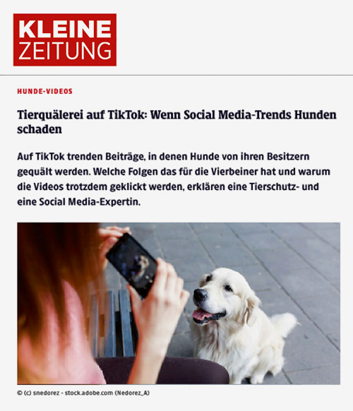 Tierquälerei auf TikTok, Kleine Zeitung, Sept. 2022