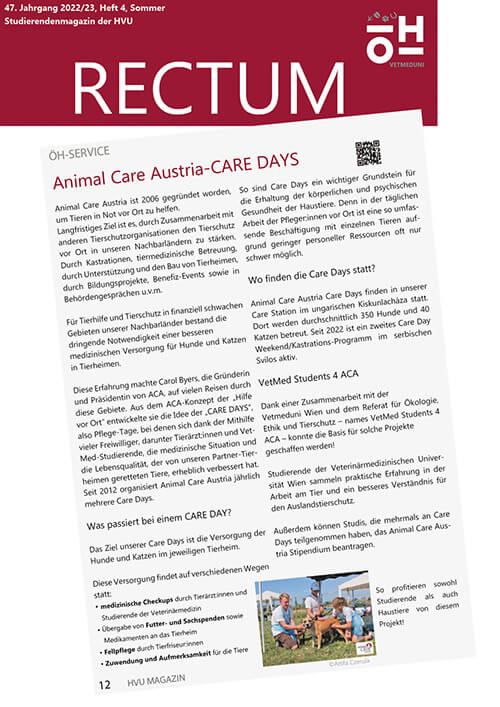 ACA Care Days in der Vetmed Uni Zeitschrift; RECTUM, Heft 4, Sommer 2023
