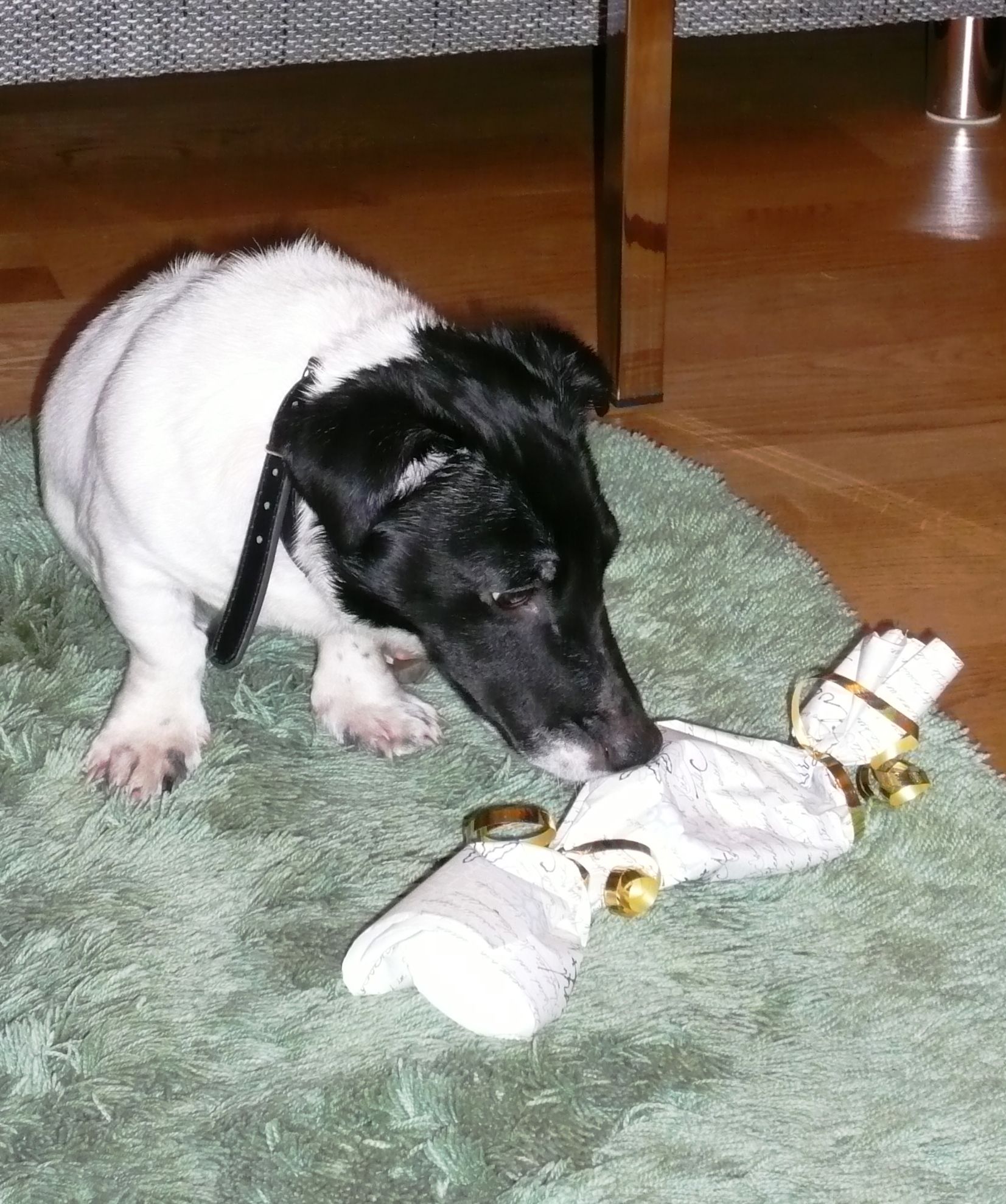 Er macht nichts kaputt (was bei meinen vorigen Hunden nicht so war, als sie klein waren) und überrascht uns jeden Tag auf’s Neue mit seiner lieben und lustigen Art.