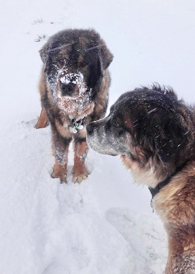 gestern waren wir wieder mit Balu bei unserer Tierärztin, er hat inzwischen 44kg > einfach super. Beim Spazierengehen werden beide immer wieder bewundert, weil Sie so groß und schön sind. Mit dem Schnee hat Balu keine besondere Freude. Er ist immer froh, wenn es heimwärts geht.