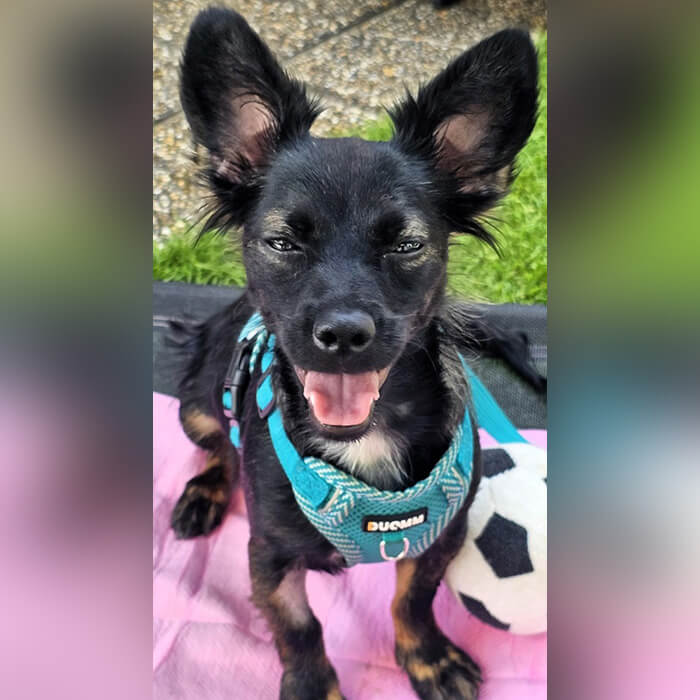 Bella hat sich sofort eingelebt. Sie ist bereits seit Sonntagabend sauber. Und überhaupt nicht verschreckt oder ängstlich. Von der ganzen Familie ist Bella gut aufgenommen worden.