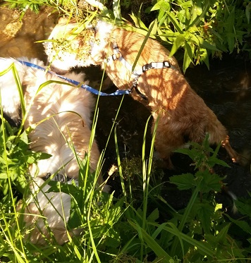 Heute hab ich schon einen richtigen Spaziergang gemacht. Bailey hat ja ohne leine laufen dürfen - ich nicht ! Ich hab aber trotzdem versucht ihm auf den fersen zu bleiben, war gar nicht so einfach besonders wie er dann plötzlich nicht mehr neben - sondern im Bach gelaufen ist. Ich hab dann meinen ganzen Mut zusammengenommen und das auch probiert - war super!!