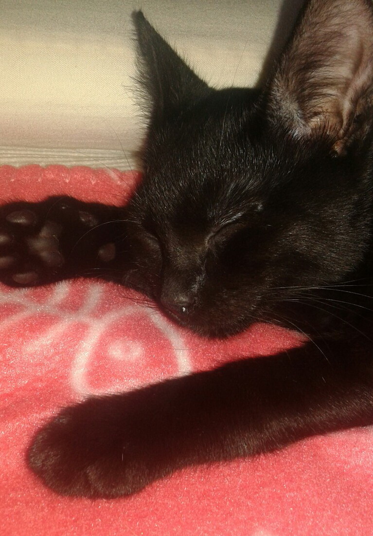 Unser Blake ist ein aufgeweckter, zuckersüßer kleiner Katzenbub, der bei jeder Berührung sofort wie ein kleiner Traktor zu schnurren beginnt. Die erste Nacht hat er gleich bei uns im Bett verbracht und es sichtlich genossen.