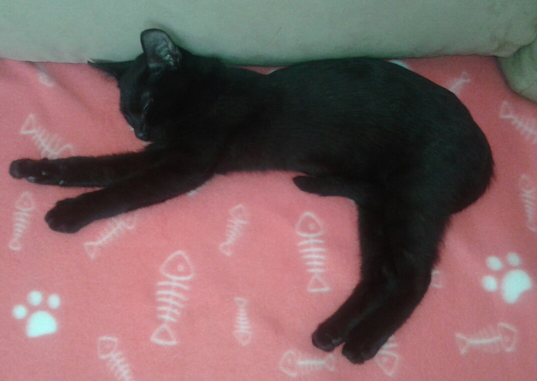 Soweit ich das beurteilen kann dürfte sich Blake sehr wohl bei uns fühlen. Er frisst wie ein Weltmeister, am liebsten aus allen Schüsseln gleichzeitig und fällt danach gerne ins „zu viel gefressen-Koma“. Sein Bäuchlein hat auch schon deutlich an Form gewonnen ;-).