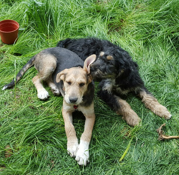 Erstaunlicherweise sind sie sehr verschmust. Immer wieder unterbrechen sie ihr Spiel und kommen angerannt, um sich Streicheleinheiten zu holen. Das finden wir bei ihrer Vorgeschichte bemerkenswert. Wir sind sicher, das ist der kompetenten und einfühlsamen Arbeit der ungarischen Betreuerinnen zu verdanken.