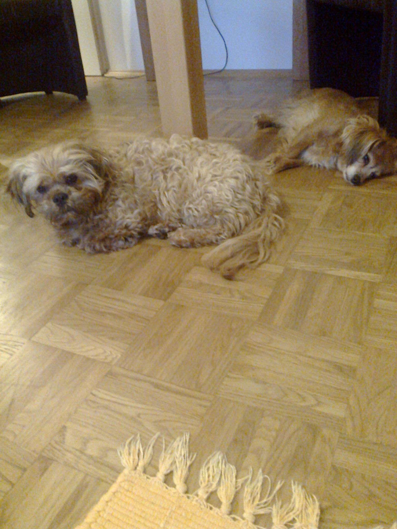 Jordan (jetzt Charly) mit Lucy bei der Mittagssiesta, er ist ein Goldschatz und Lucy lern ihn mit viel Geduld alles was schlimmes machen kann und wie man Frauchen austricksen tut. Schön lansam taut er auf und genießt auch schon die Streicheleinheiten. Nur Lackerl und Häufchen machen wir in die Wohnung, obwohl wir viel Gassi gehen, aber er hat noch viel Angst vor den unbekannten Geräuschen. Ansonsten ist er ein volles Familienmitglied geworden und ich kann mir es ohne ihn nicht mehr vorstellen.
