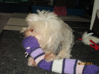 Cindy ist total glücklich und zufrieden bei uns - hat ständig Hunger - und ein kleiner frecher Lauser. Anbei wieder ein paar Fotos von Cindy - mit ihrer neuen Wollschlange (die ich extra für sie gestrickt habe).