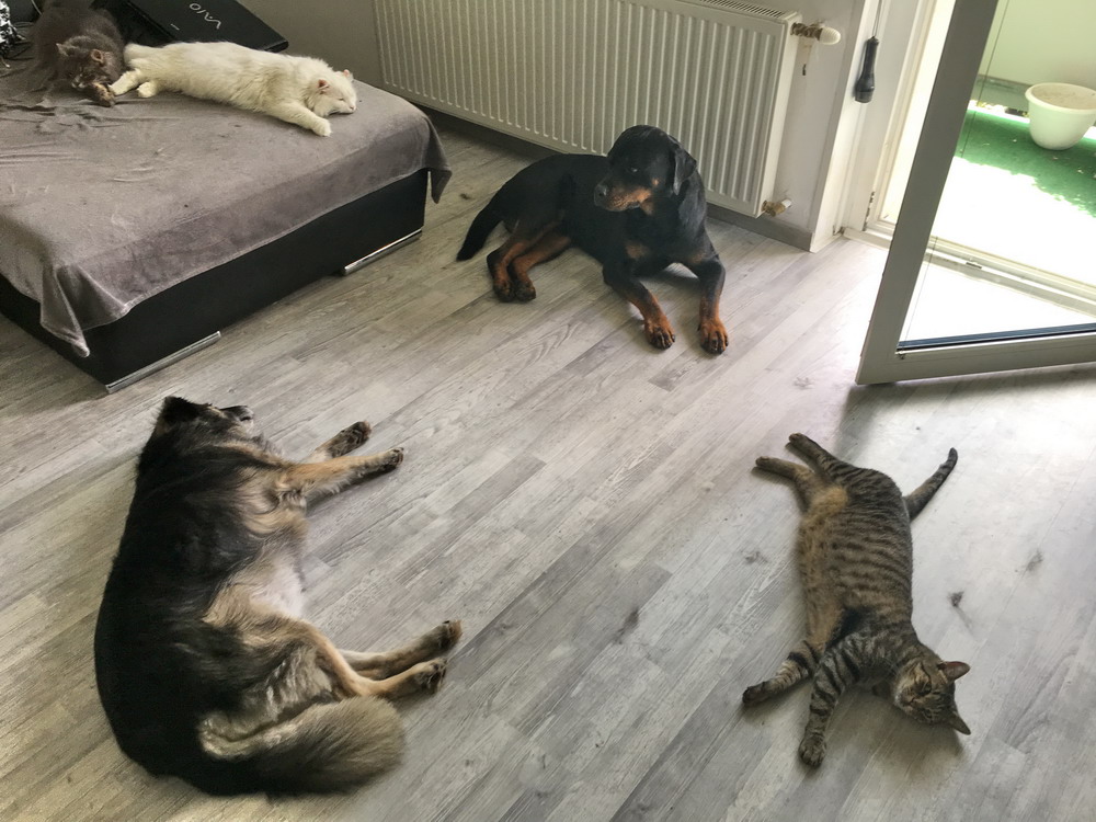 Sie heißt jetzt Dana. Mit den Katzen klappt es wunderbar; nur im Wald möchte sie gerne Eichkätzchen jagen. Mit meiner Tochter hat sie sich auch schon angefreundet; überhaupt keine Scheu mehr.