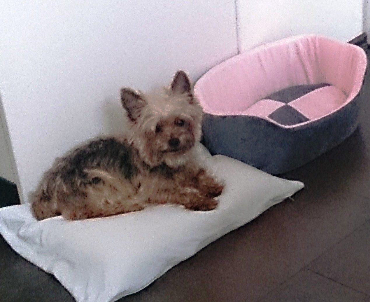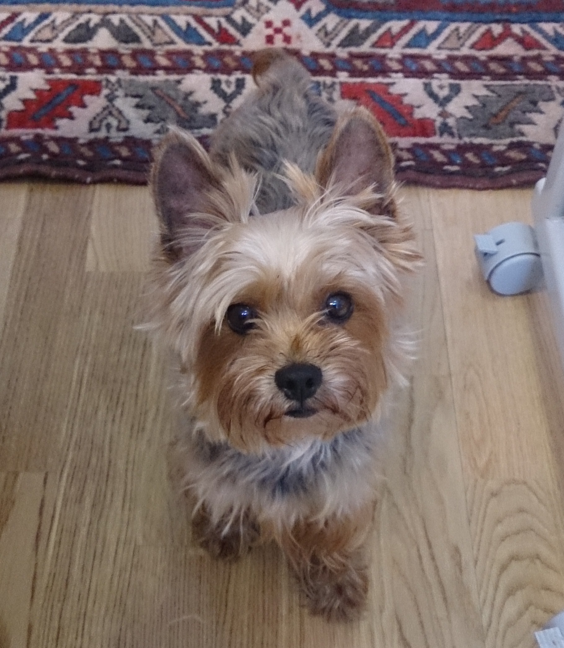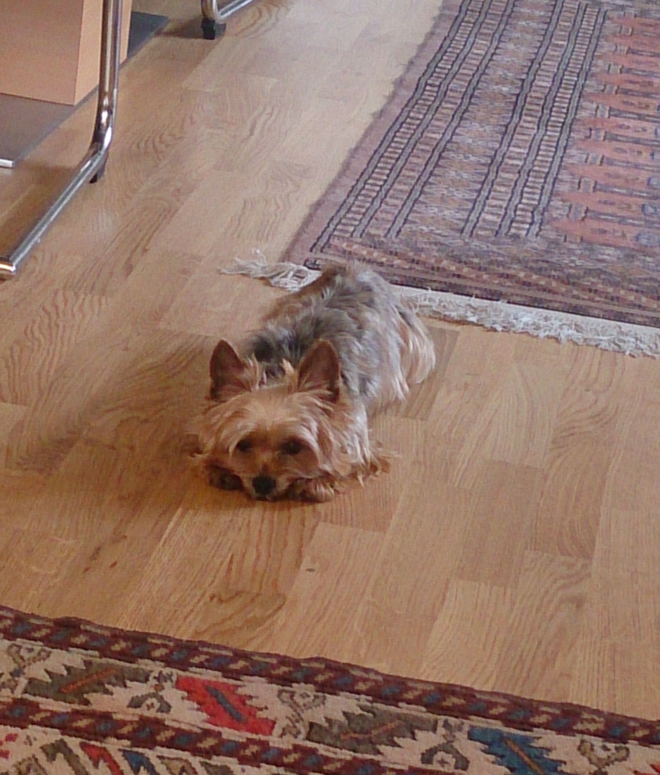 Interessant ist, dass sie auf keinem Teppich gehen will, sie geht drum herum. Und drauflegen will sie sich auch nicht, offenbar ist sie nur glatte Böden gewöhnt.