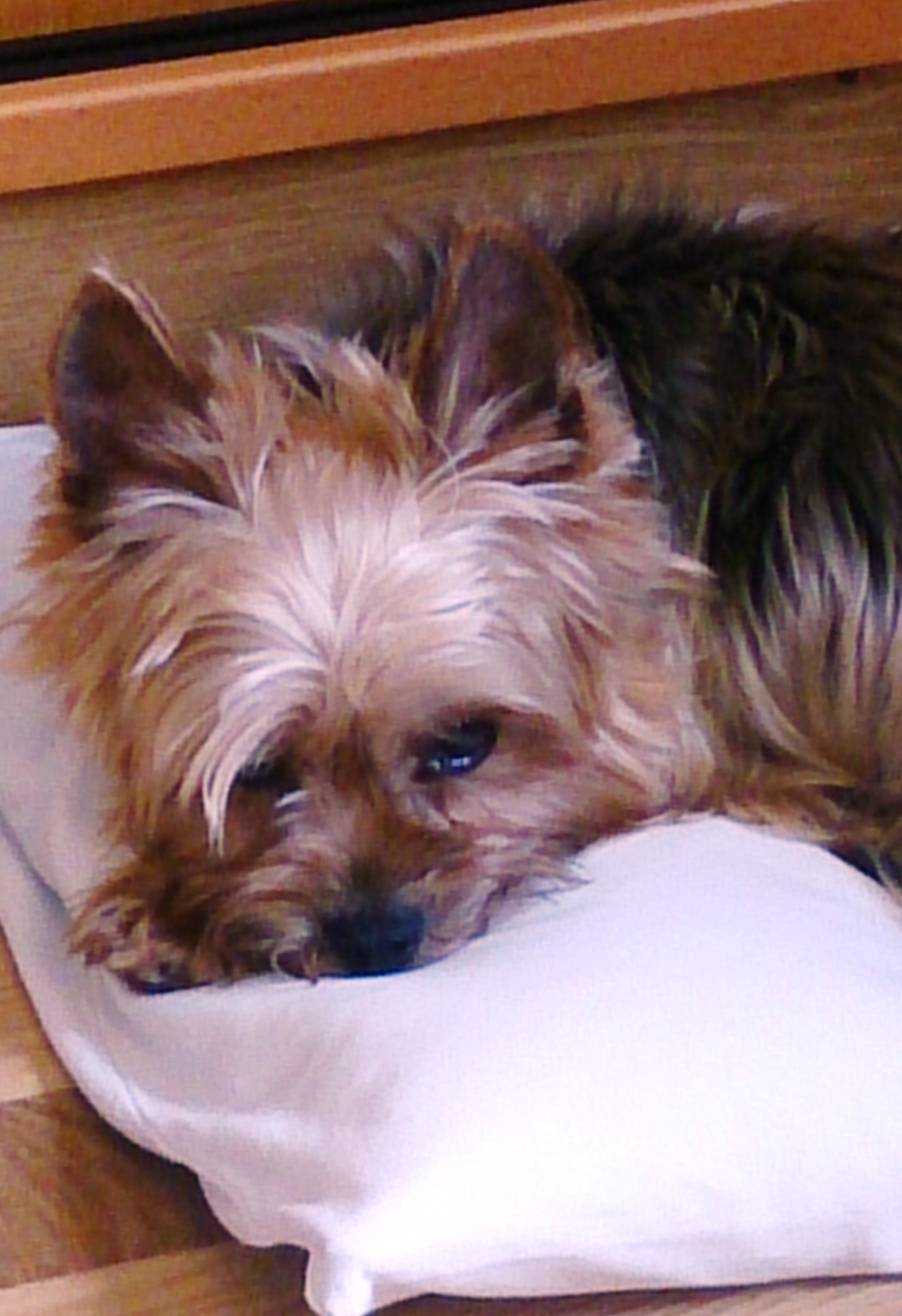 Das erste Foto ist von zu Hause in der Küche, wo sie den totalen Überblick über sämtliche Zimmer hat, die anderen Fotos sind von grad eben im Büro. Jetzt gerade schläft sie (letztes Foto), nachdem wir lange im Garten waren.