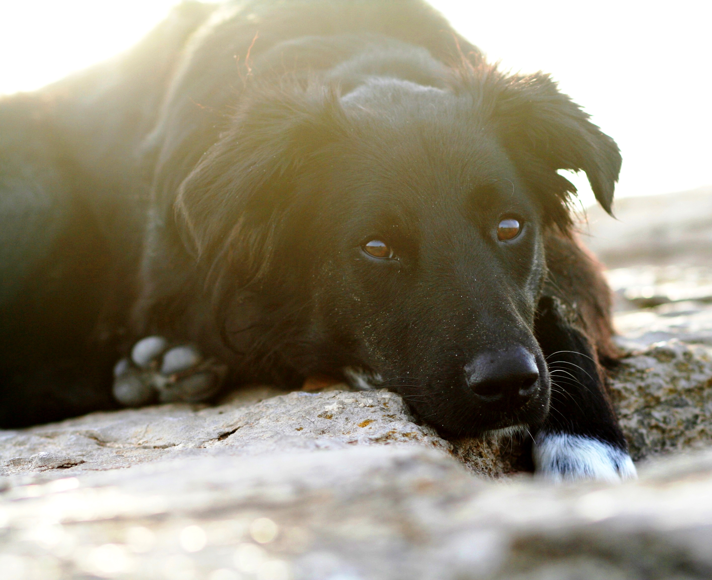 Ich war total happy, dass mein Frauli so viel Zeit für mich hatte und ich ihre volle Aufmerksamkeit genießen konnte. Sie hat mir auch oft gesagt, was für ein toller Reisebegleiter ich doch bin, da war ich ganz stolz. Nachts haben wir auch in unserem Auto geschlafen, da habe ich immer gleich geknurrt und gebellt, wenn jemand zu Nahe kam, man weiß ja nicht!!! Frauli hat mich dann immer gelobt, wenn ich gut aufgepasst habe. Einmal hat sie sich an einen tollen Strand gestellt und das Abendessen hergerichtet, aber da waren ganz komische Leute im Gebüsch, die mein Frauli aber nicht gemerkt hat, ich konnte gar nicht Essen vor Aufregung und hab eh nur geknurrt und gebellt, aber sie hats ganz lange nicht kapiert- Mann, ist die schwer von Begriff! Aber sie hat mir dann endlich geglaubt, dass wir dort nicht schlafen können und wir haben uns ein andres Schlafplätzchen gesucht, puuuhhh...sonst hätt ich wohl kein Auge zubekommen!