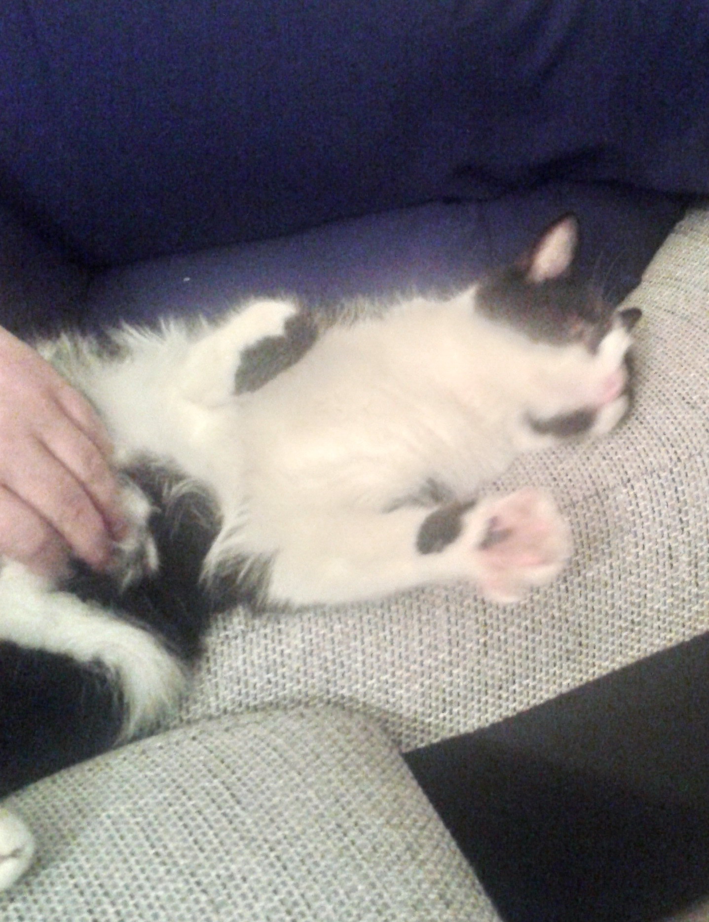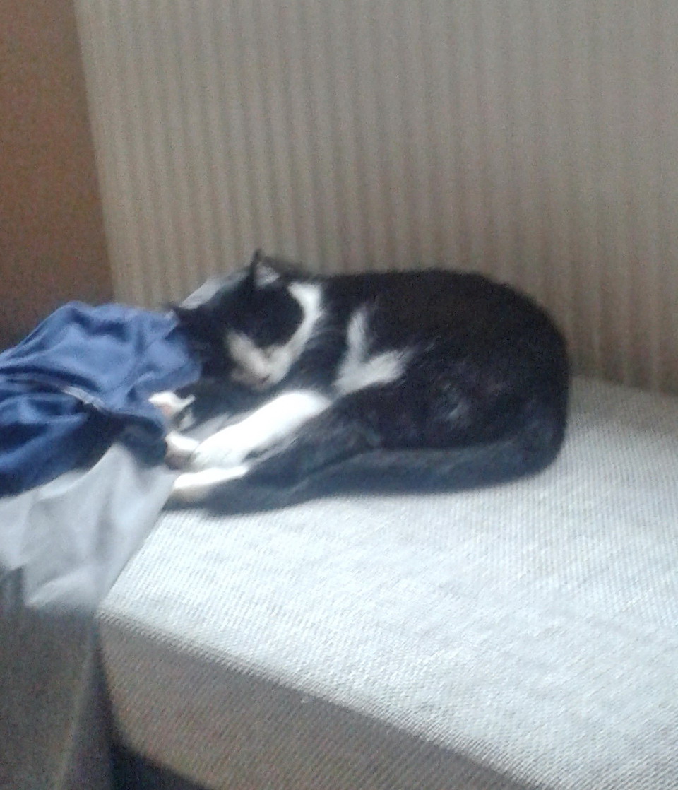 Tagsüber ist er vor allem müde und liebesbedürftig, sagt mein Mann. Teilweise muss er aufhören zu arbeiten um mit Figaro zu kuscheln.