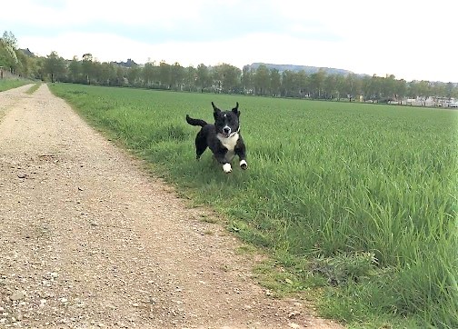Sie hat sich trotz der kurzen Zeit gut eingelebt. Wir besuchen zweimal in der Woche die Hundeschule und es wird von Mal zu Mal besser. Bei großen Spaziergängen darf Finja zum Teil schon ohne Leine gehen. Sie hat bereits viele Hunde kennen gelernt und ist absolut kein Problem. Kleine Kinder mag sie sehr gerne und im Reitstall mit den Pferden ist es auch kein Problem.