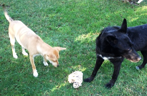 wie versprochen anbei aktuelle Fotos vom Fräulein - bei dem herrlichen Wetter liebt sie es, sich mit ihrer Freundin Leni im Garten zu Vergnügen. Aber auch meinen griechischen Kater Nikos durch die Wohnung zu jagen bereitet ihr große Freude (und Nikos auch!).