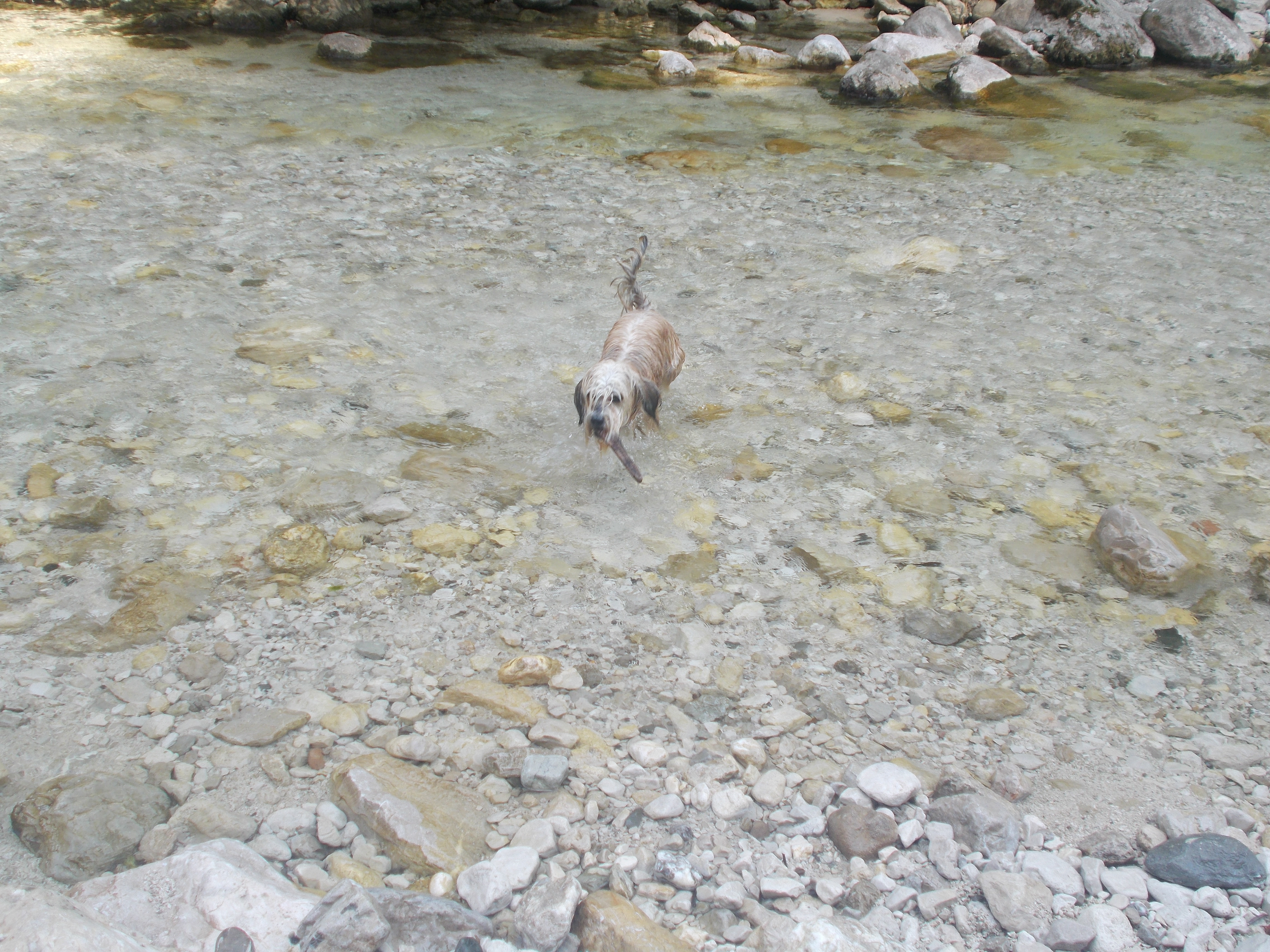 Sie liebt es zu schwimmen und mit ihren Hundefreunden in der Wiese herumzutollen, außerdem begleitet sie uns gerne in den Wald.