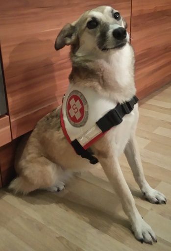 Ich habe im Februar mit ihr den Samarieterbund besucht, da ich gehört habe, dass sie eine Terapiebegleithund Ausbildung anbieten. Katy wurde als tauglich eingestuft und seitdem sind wir bei den Trainings immer dabei. Da ich mit ihr davor immer nur zuhause geübt habe, müssen wir jetzt noch offiziell in einer Hundeschule die Unterordnung (BH-Prüfung) nachholen. Das sollte für Katy kein Problem sein. Sie ist ein sehr ruhiger Hund und auch sanft zu Kindern, deswegen durften wir schon in mehreren Einsätzen erfahre Teams begleiten und von diesen lernen. Nichtsdestotrotz müssen wir noch sehr lange trainieren, bis wir Prüfung zum Therapiebegleithund ablegen können und ein zertifiziertes Team werden.