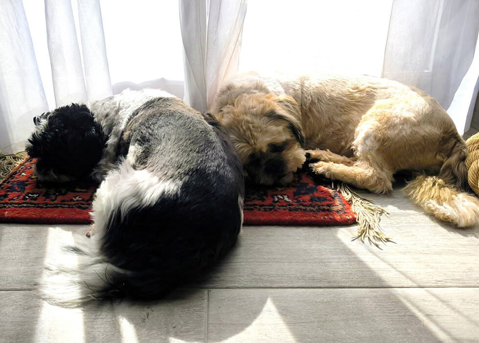 Lola und ihr 4 beiniger Anker (unsere schwarz/weiße Hündin) sind ein Herz und eine Seele und mittlerweile richtig zusammengeschweißt. ❤️🥰 Sie spielen und kuscheln sehr gerne miteinander.