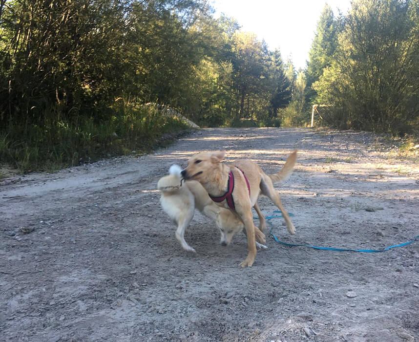 Mailo liebt ausgiebige Spaziergänge, besonders in Wald und Feld und Fetzrunden auf der großen Wiese mit Mara. Bei Menschenbegegnungen ist er noch sehr zurückhaltend, bei Hundebegegnungen immer höflich und offen🙃. Und nachdem wir uns für den Namen Mailo entschieden haben (leicht verändert zu ehemalig Mile), hab ich nun seine Bedeutung nachgeschlagen: Mailo = der Angenehme, der Liebliche. Genau so ist unser Mailo😍!