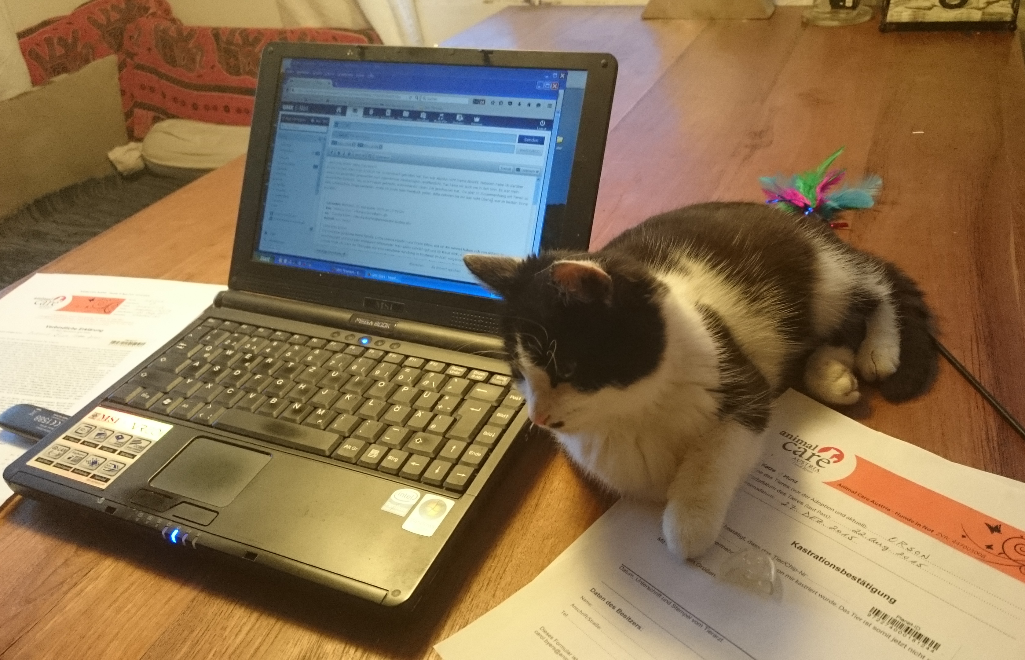 Wir sind eine glückliche kleine Familie. Lottie (meine Hündin) und Orson (Maxi, wie ich ihn nenne) haben sich von Anfang an beschnuppert und sind sehr entspannt miteinander. Maxi gehts sichtlich gut und ich freue mich, dass alles so gut geklappt hat.