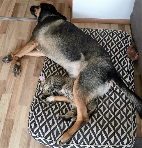 Im Haus ist er eher ein ruhiger Hund und genießt es mit unseren jungen Katze oder mit uns zu kuscheln. Da ich ein Baby erwarte üben wir auch schon ab und zu neben dem Kinderwagen zu laufen aber das ist für Mikesch gar kein Problem! Und Kinder liebt er ja sowieso über alle Maßen weil man da so gut Streicheleinheiten abstauben kann.
