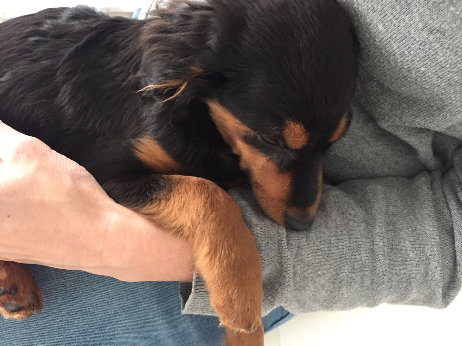Muffin geht es sehr gut und hat sich super eingelebt. Sie schläft die ganz Nacht durch und ist bis auf ganz wenige kleine Ausrutscher stubenrein. Mit allen drei Katzen verträgt sie sich seit Tag eins bestens. Ich war mit ihr auch schon bei unserem Tierarzt, um die Augen nachkontrollieren zu lassen -> alles in Ordnung.
