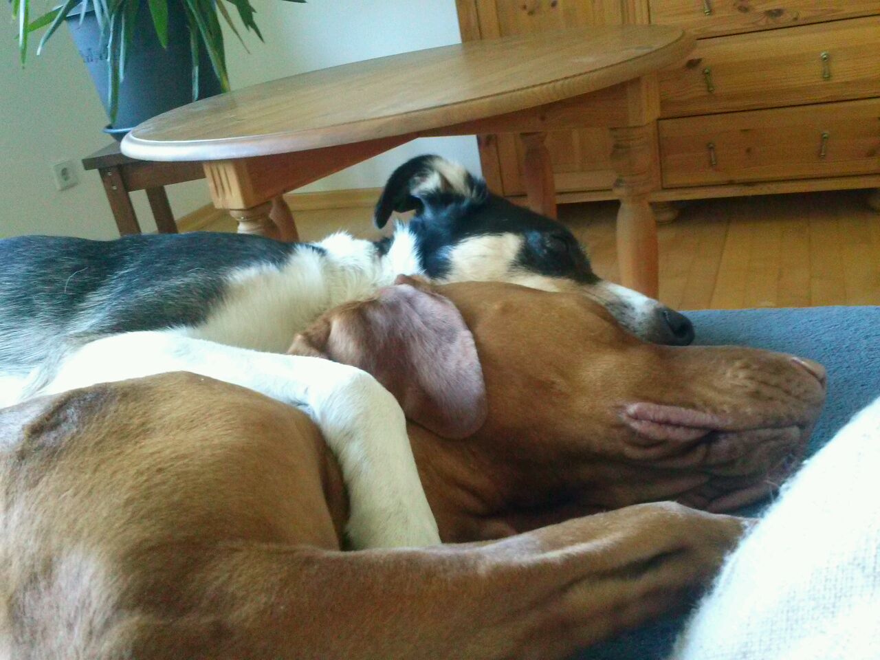Ricko ist manchmal ziemlich anstrengend. Er leckt mir die Ohren sauber und putz mein Fell bis ich voller Speichel bin. Ich bin sehr froh ihn zu haben, alles was ich noch nicht wusste (vor allem die lustigen Sachen hat er mir beigebracht) zur Verzweiflung von Herrchen und Frauchen die mit einem Lächeln darüber hinwegsehen.