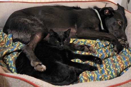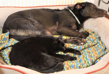Bitte sprechen sie der Betreuung in Ungarn höchstes Lob aus. Wir waren überrascht einen so wohlerzogenen und top-sozialisierten Hund bekommen zu haben. Seit geraumer Zeit bahnt sich eine seltsame Freunschaft zwischen unserem schwarzen Kater und Oreo an, die ihren Ursprung im Eifern um unsere Aufmerksamkeit hatte und nunso endet (siehe Bilder)
