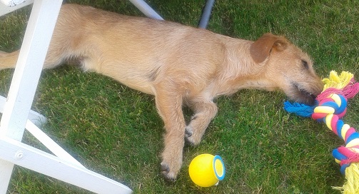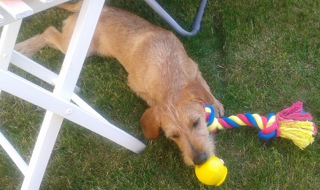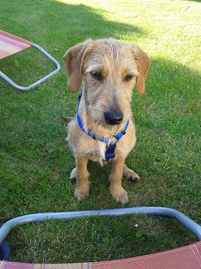 Entschuldigen Sie bitte, dass ich jetzt erst schreibe, aber ich hatte in letzter Zeit beruflich sehr viel zu tun. Oscar entwickelt sich hervorragend. Er ist super brav und sehr gelehrig. Sitz, Platz und Bleib beherrscht er schon sehr gut. Auch das Abrufen gelingt schon zu ca. 95 %. Letzten Mittwoch war er schon mit in der Schule. Er war sensationell brav. Nachdem er alle Kinder beschnuppert hatte und sich von ihnen streicheln ließ, legte er sich, als ich unterrichtet habe unter den Lehrertisch. Bei der Probe für unser Schulfest im Turnsaal, traf er auf alle 94 Kinder meiner Schule und blieb einfach ganz brav neben mir liegen. Mein Mann hatte ihn am Freitag mit in der Firma. Auch dort war er perfekt brav. Heute hatten wir die erste Einheit mit einem Hundetrainer, und der war auch ganz von ihm begeistert, da er super schnell lernt. Anbei auch ein paar aktuelle Fotos.