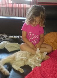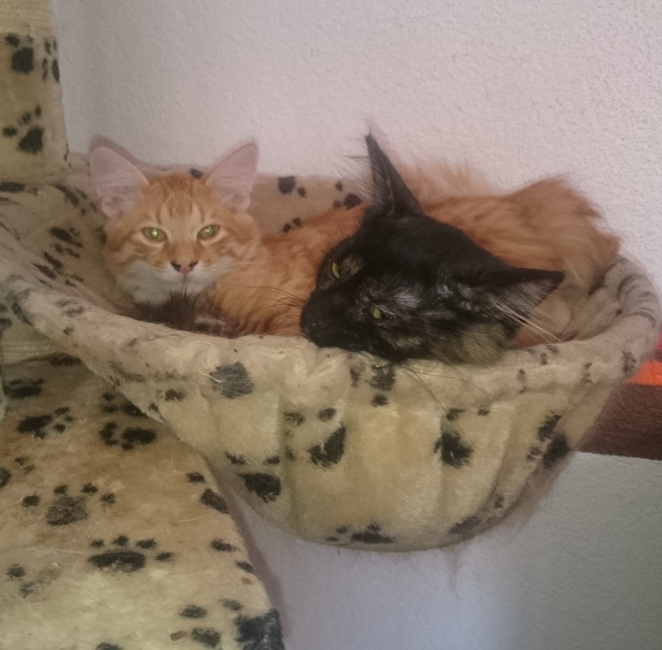 Unsere große Katze ist noch nicht glücklich, aber auch nicht abgeneigt und besucht die zwei immer neugierig.