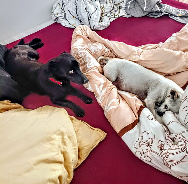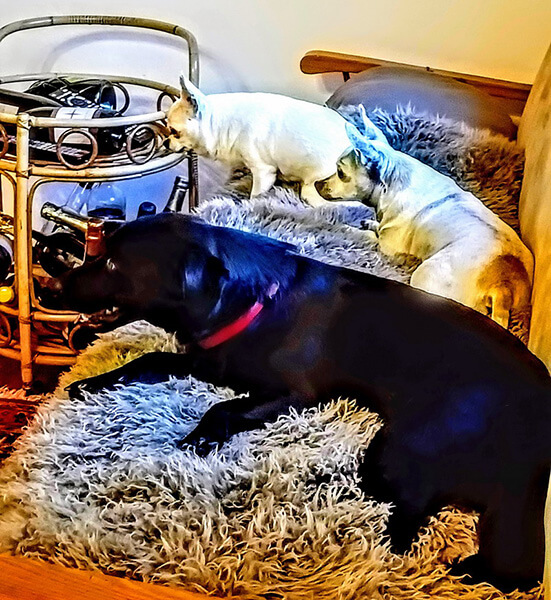 Hilda und Pippa sind beste Freundinnen und auch mit Gizmo passt es gut - der kleine Chihuahua ist der Chef, so wie es sich gehört ;)