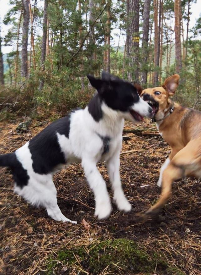 Piri mit ihrem neuen Freund Poko aus Griechenland, auch von einer Tierschutzorganisation, seit 3 Tagen ein neues Mitglied in der "Hundefamilie".