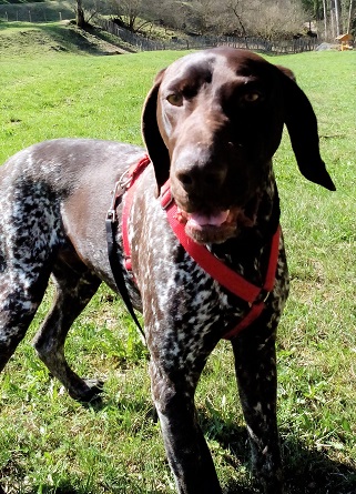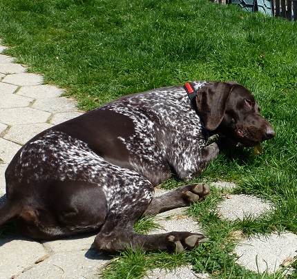 Rex ist ein absoluter Traum, das war Liebe auf den ersten Blick. Man merkt schon sehr dass er es bei ihnen gut hatte, und sehr menschenbezogen ist. Wir haben schon einige gemeinsame Spaziergänge gemacht und er fühlt sich sichtlich wohl hier bei uns. Er liebt es im Frischen Gras in der Sonne zu liegen und Schweineohren zu knabbern. Mit den anderen beiden Hündinnen versteht er sich blendend, wurde auch sofort akzeptiert. Der Kater muss sich erst noch an ihn gewöhnen, Rex hat ziemlichen Respekt vor ihm und erschrickt jedesmal wenn er um die Ecke kommt, manchmal bellt er ihn an... und kann irgendwie nicht verstehen dass der so gar nicht wegläuft, aber wird schon noch werden