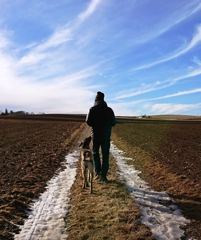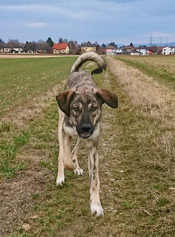 Auch wenn es sich durch die Fotos fast erübrigt: er wächst und gedeiht und genießt sein Hundeleben in vollen Zügen. Allem Wetter zum Trotz hat das Herrli sogar zum Radfahren begonnen – das taugt Smokey natürlich enorm! Und auch diverse Hundefreunde im Ort sind willkommene Spiel- und Laufgefährten.