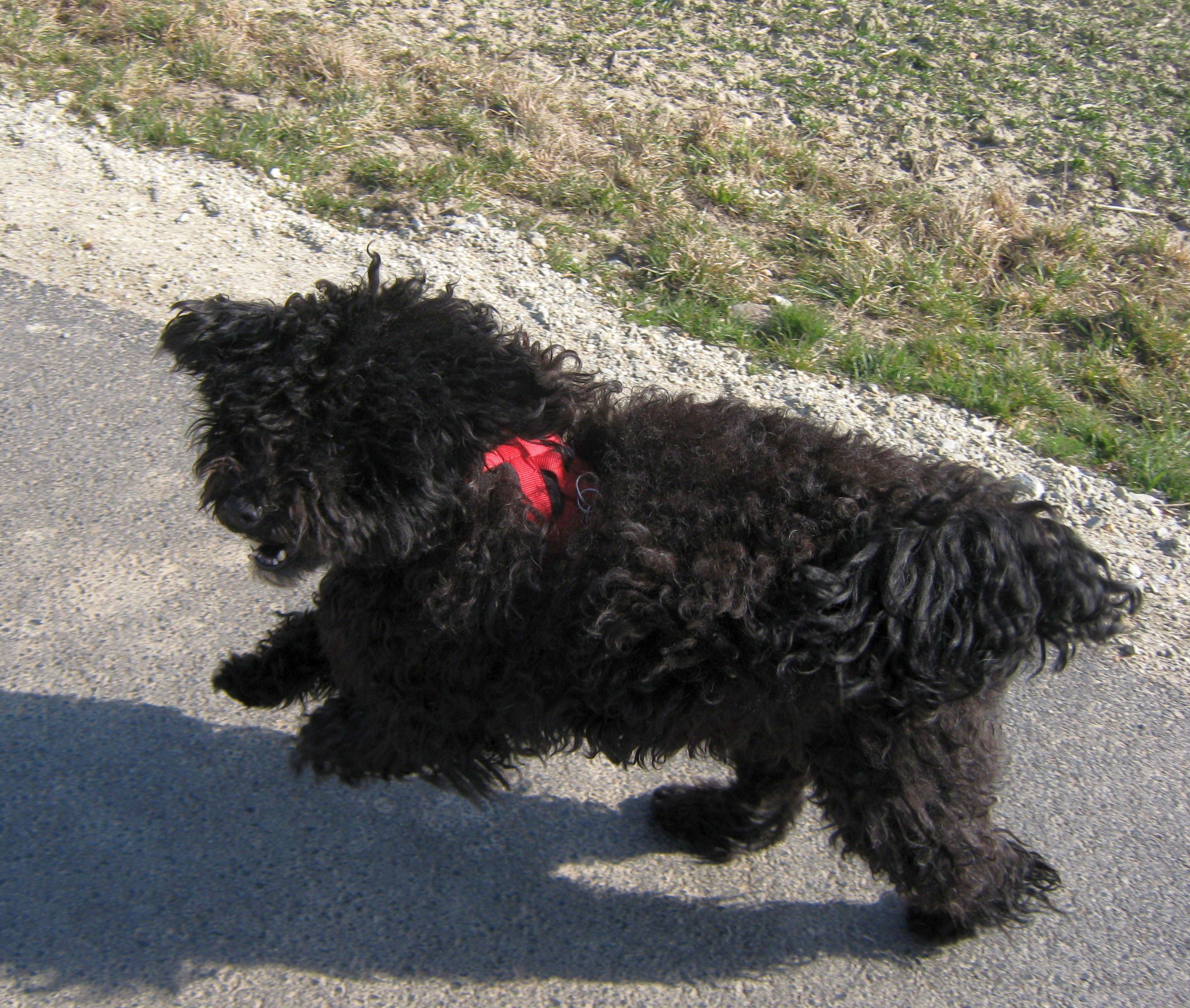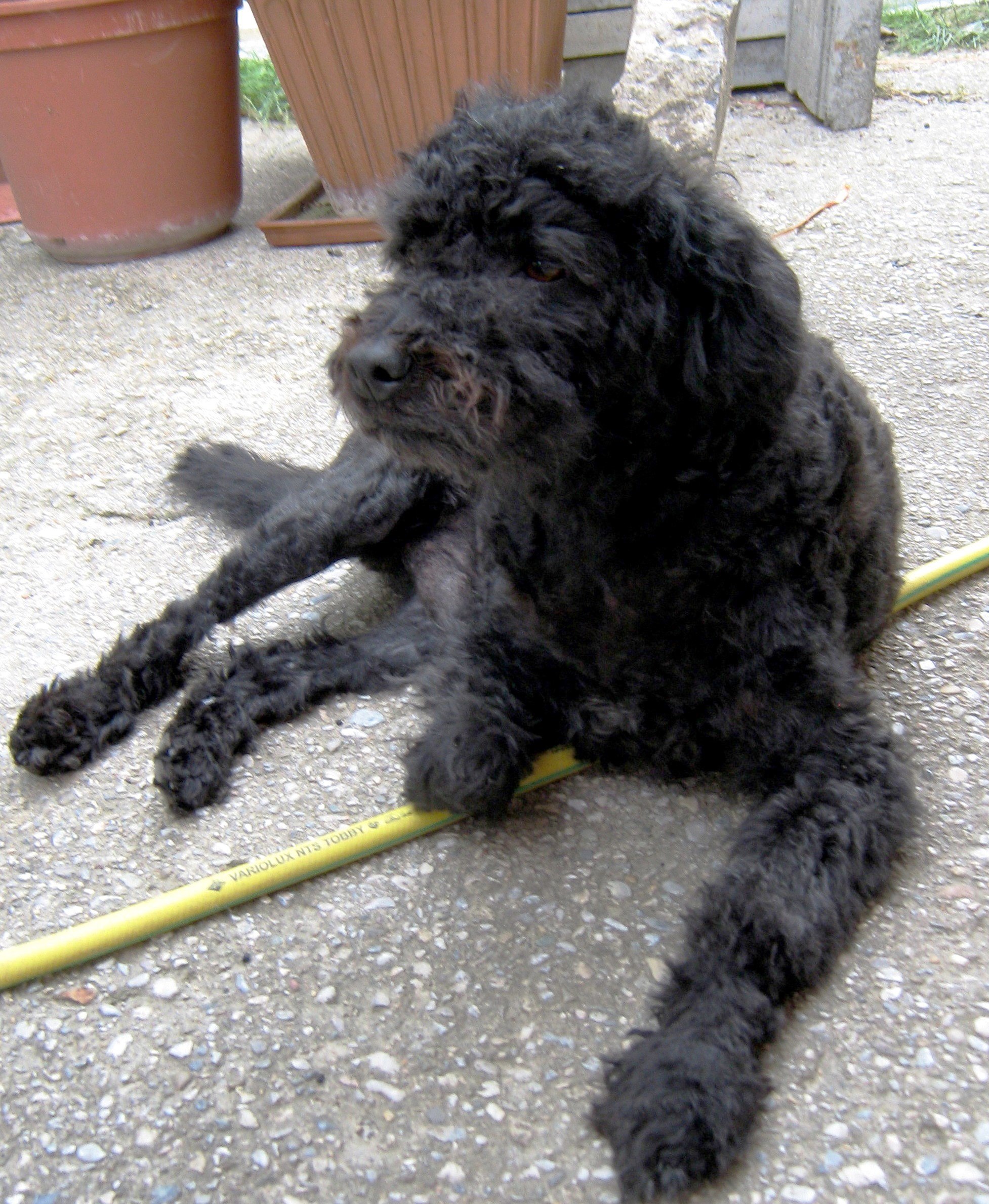 Zwei Umständen habt Ihr es zu verdanken, dass ich jetzt fast wieder so aussehe wie damals, als wir uns verabschiedet hatten: Ich war fellmäßig schon fast ein Urpuli wie meine Vorfahren vor tausenden Jahren im Nahen Osten, hatte geduldig die aufwendigen Frisörbesuche über mich ergehen lassen und mein lockiges Haarkleid war dem entsprechend imposant, mein Anblick begeisterte die Betrachter. Dann musste ein sehr ausgeprägtes Lipom im hinteren Flankenbereich entfernt werden, mein Haarkleid sah plötzlich aus wie nach einem heftigen Mottenbefall. Als dann auch noch die großen Hitzewellen kamen und ich das Haus nicht mehr verlassen wollte, haben sich Herrl und Frauerl meiner erbarmt und das mühevoll erworbene Haarkleid auf den fantasielosen neoliberalen Managerstil verstümmeln lassen. War zwar nicht stilgerecht, jedoch eine Wohltat und ich fühlte mich puliwohl.