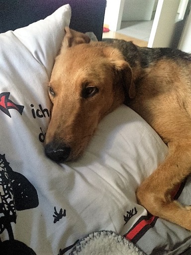 Macht so schöne riesige Fortschritte. Jeden Tag ein wenig mehr. Macht super brav alle Geschäfte im Garten. Geht schon im Garten und im Innenhof unserer Anlage an der Leine spazieren.