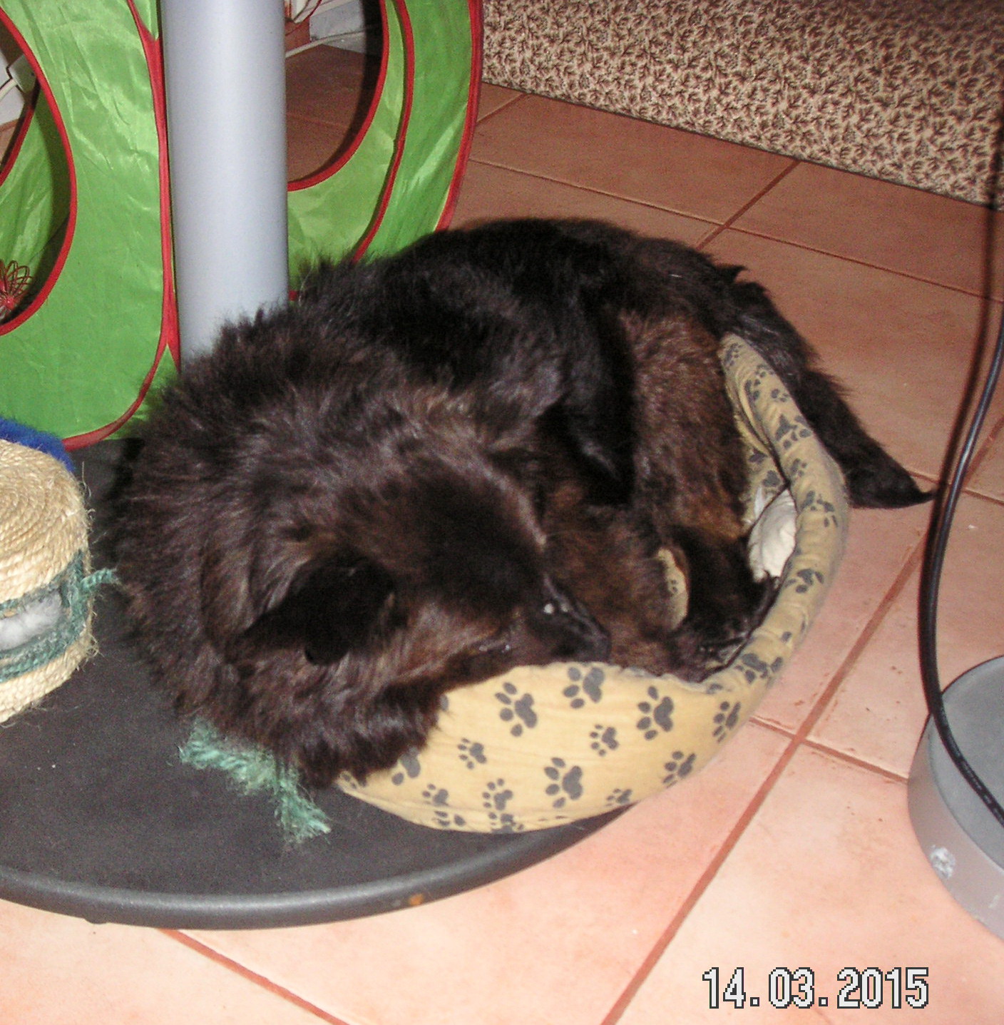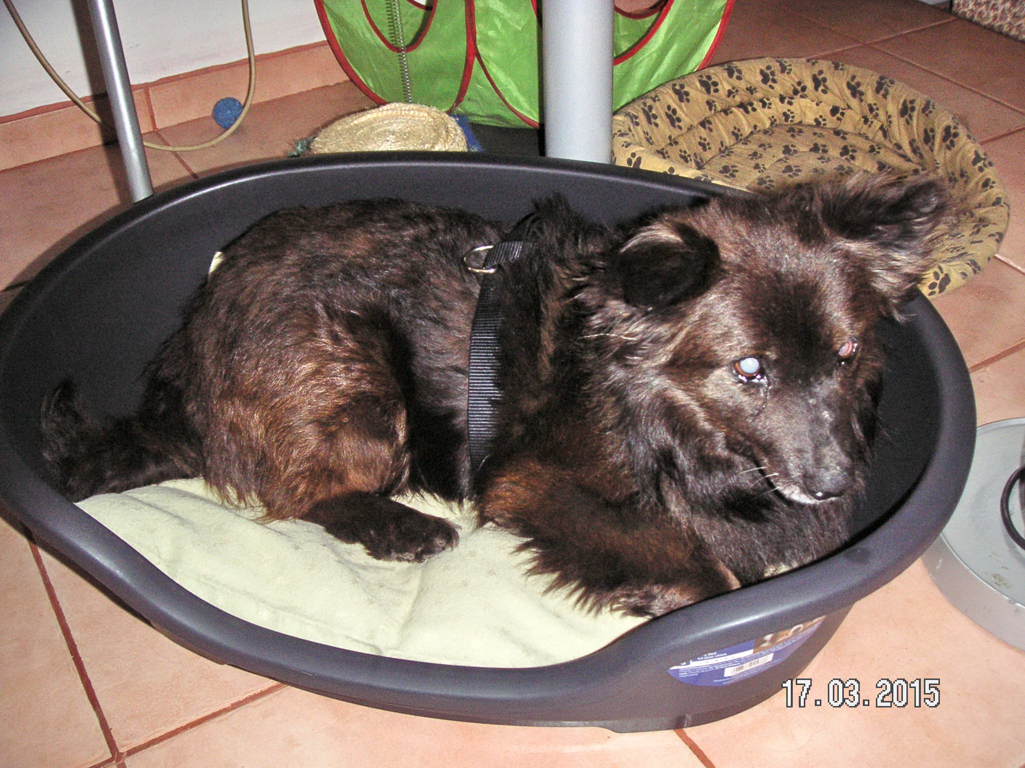 - Samstag abend nach Hauskontrolle, Katzenkorb selbst ausgesucht und für ihn ok., aber natürlich zu klein
