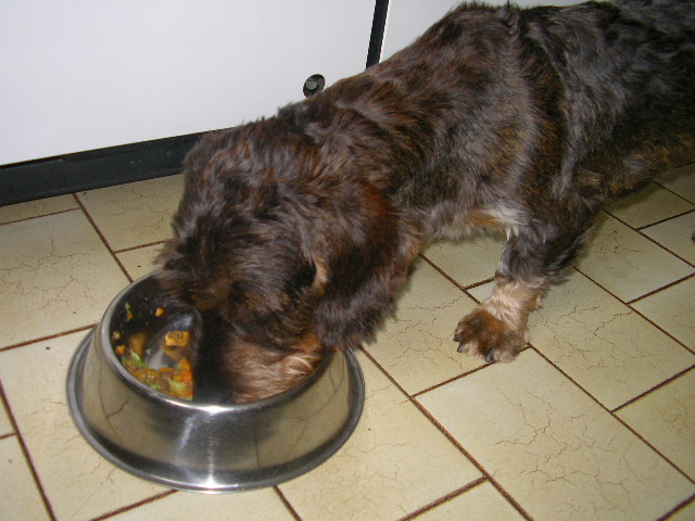 anbei Bilder von Vito. Er hat sich gut entwickelt, hat allerdings zu Beginn trotz hypoallergenem Futter einen bösen hot spot gehabt. Ist jetzt aber wieder verheilt und Haare sind nachgewachsen. Wollen hoffen, dass er so schnell nicht wieder kommt. Versuchen jetzt aber trotzdem etwas Obst ( Apfel u. Melone) und Gemüse (Möhren u. Brokkoli) zuzufüttern, bisher kein Problem. Äpfel sind seine Delikatesse.Wir haben noch nie einen Hund so Äpfel schmatzen hören.