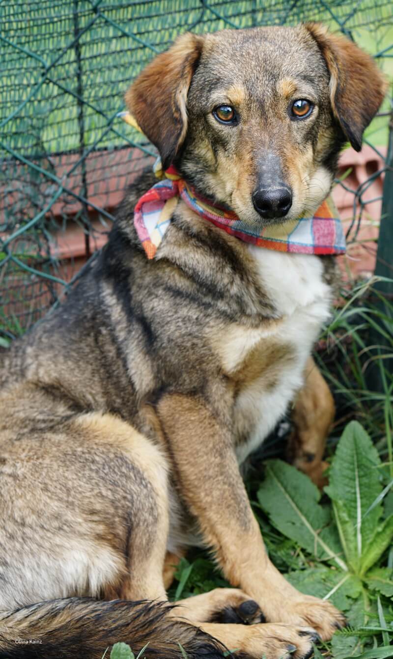 quirlig, verspielt, bewegungsfreudig, menschenbezogen, zuweilen unsicher und unterwürfig, vorsichtigAngie ist eine im Januar 2020 geborene, kastrierte Mischlingshündin, die als Welpe gemeinsam mit ihren Geschwistern Aida, Olli, Ringo und Tino im serbischen Tierheim aufgenommen wurde. Nun lebt sie auf einer Pflegestelle bei unserer Hundetrainerin im Burgenland und wartet dort auf eine liebevolle Familie.